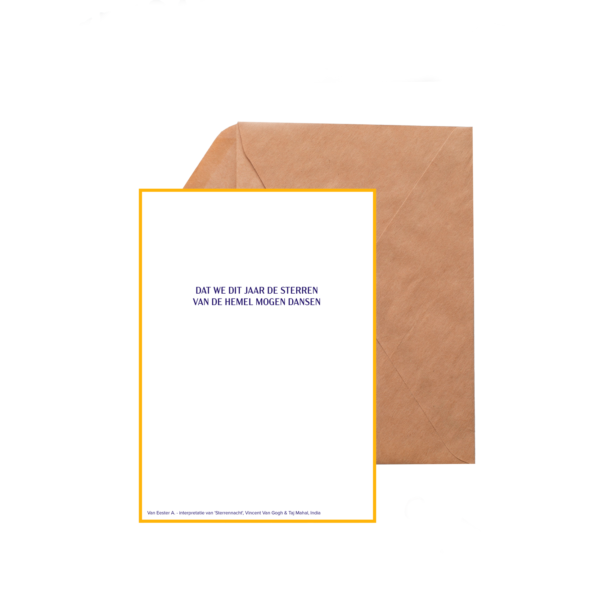 - achterkant met tekst: 'Dat we dit jaar de sterren van de hemel mogen dansen'